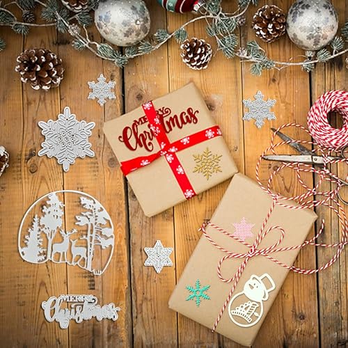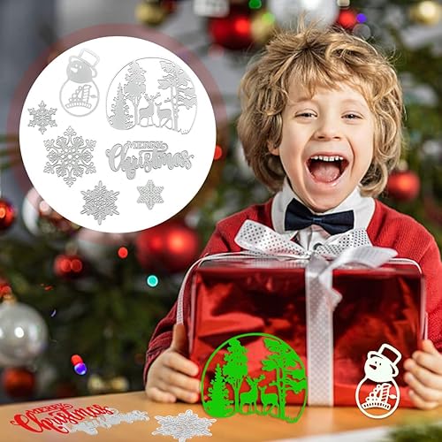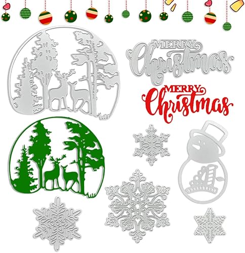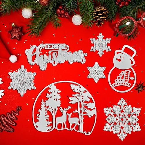 7 Pièces Matrice de Découpe Joyeux Noël, FUKPO Coupe Die Sapin de Noël Martice Decoupe Merry Chrismas Flocon de Neige Cerf Bonhomme de Neige, Dies Noel Pochoir en Métal pour Scrapbooking Carte