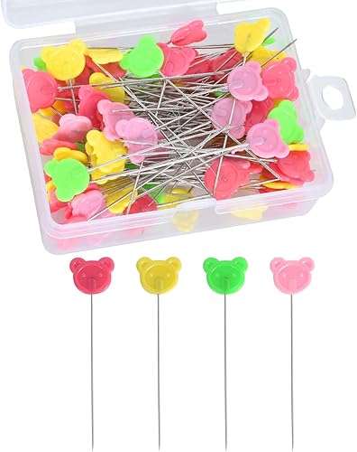100 PCS Épingles Multicolores,Couleurs Assorties Épingles Décoratives,Épingles à Coudre Couture Plat Colorées Epingle Couture en Forme-5cm/2in-Épingles en Tissu (Ours)