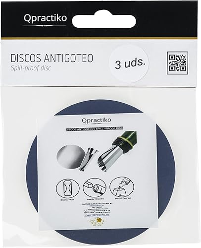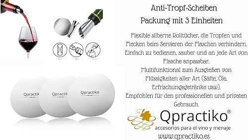 Qpractiko - Lot de 3 Disques Anti-Goutte en Acier Inoxydable | Pour Vin sans Taches | Verseur Vin Élégant Sans Goutte | Nettoyage Facile | Argent