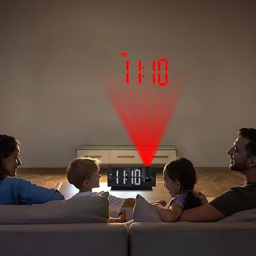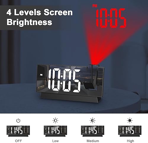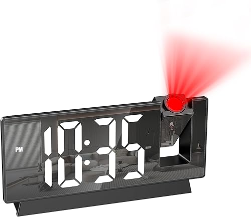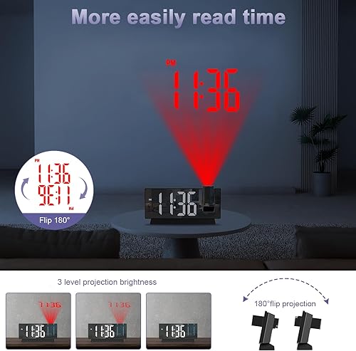 OQIMAX Reveil Projecteur Plafond, Réveil Numérique Projecteur 180°, Réveil Projection avec 4 Niveaux de Luminosité, Température, Date, 12/24H, Snooze, Horloge Miroir LED 8' pour Chambre Bureau
