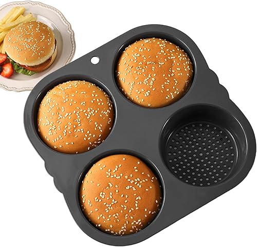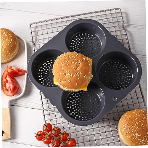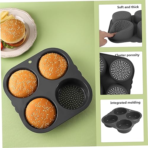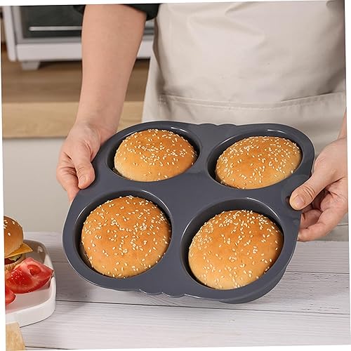 Hamburger Bun Moule Round Plateau de four Silicone Burger Bun Baking Tray avec 4 cavités Pain non cuites en boîte à pâtisserie avec porosité dense pour l'outil de cuisson Kichen
