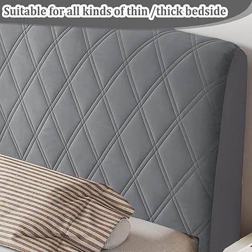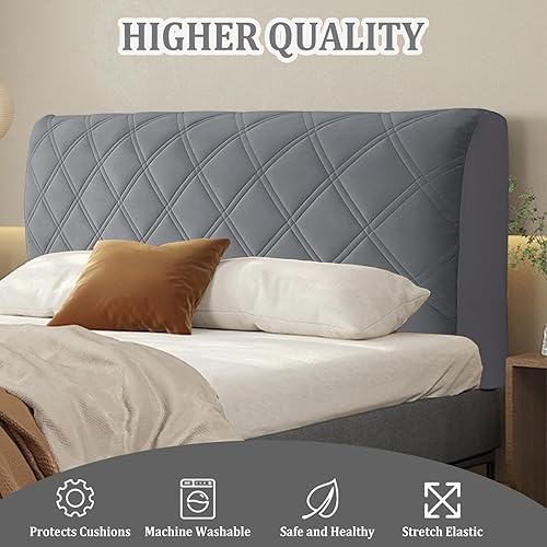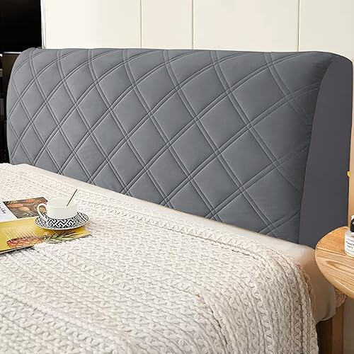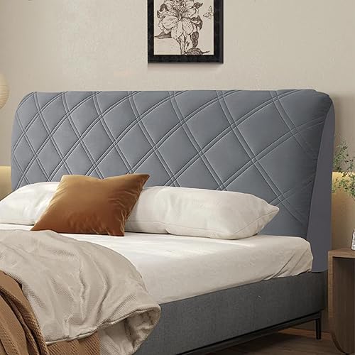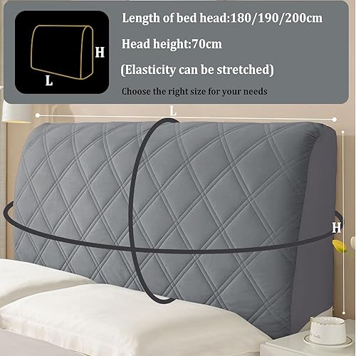 Housse de tête de lit en Velours Doux et Extensible, Housse de Protection Anti-poussière, Housse de tête de lit Tout Compris pour tête de lit de Chambre à Coucher tapissée (Gris foncé, 200 CM)