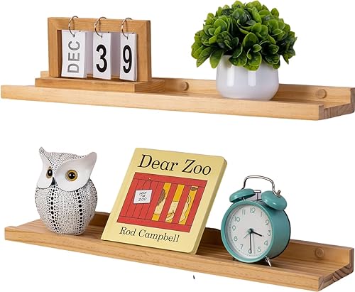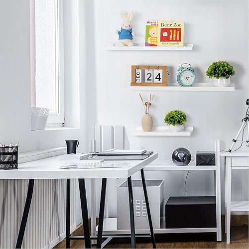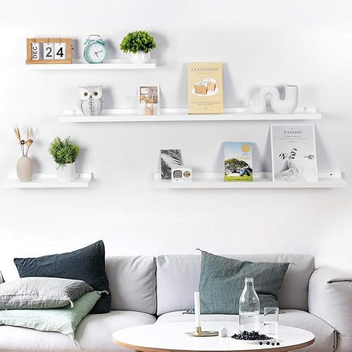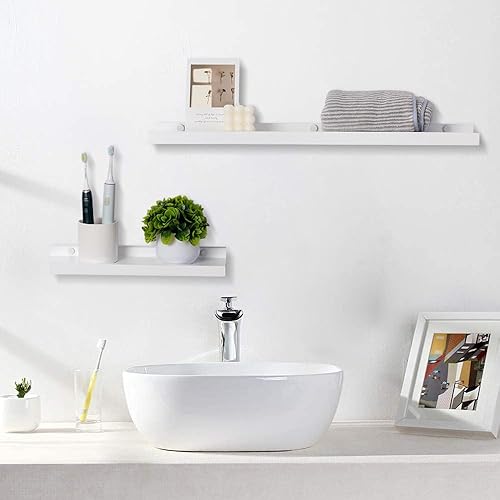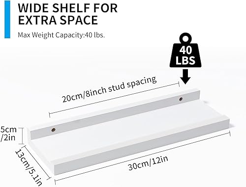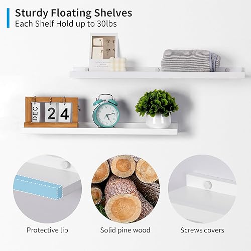 GIEANOO Etagères flottantes, Lot de 2 étagères en Bois Massif Rustique pour Photos, montées sur Le Mur Etagères murales pour Le Salon, la Cuisine, la Chambre (Blanc, 30x13cm)
