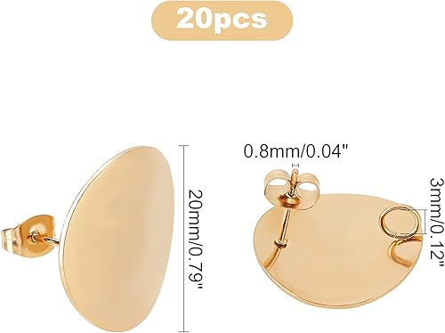 UNICRAFTALE 20 pièces Clou Boucles d'oreilles Acier Inoxydable Doré Boucle D'oreilles Rond Tige Boucles d'oreilles avec écrous d'Oreilles Fermoir Boucles D'oreille pour Fabrication de Bijoux