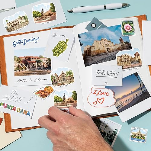 Navy Peony Autocollants de Voyage République Dominicaine Tropicale (28pcs) – Illustrés à la main, Décalcomanies de Vacances Thématiques pour Journaux, Scrapbooks, Bagages