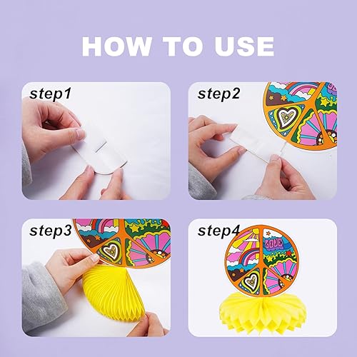Zythem 9 Pièces Décoration en nid D'abeille Hippie Décoration en nid D'abeille Vintage pour Fête D'anniversaire 60 ' s 70 ' s Hippie Thème Décorations de Table