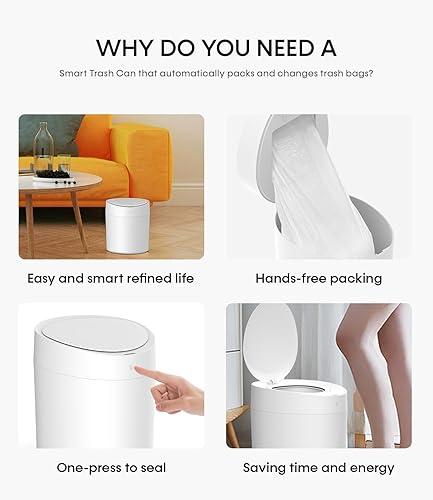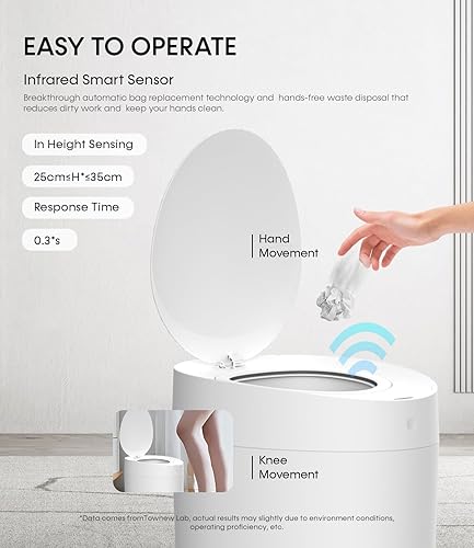 TOWNEW T AIR ONE – Poubelle intelligente de 9 litres, poubelle automatique avec auto-scellante et auto-changeante, poubelle rechargeable activée par le détecteur de mouvement, pour salon, chambre à