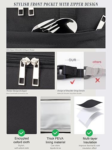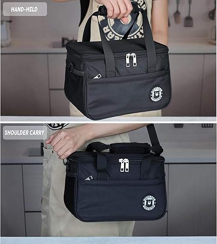 HIHIBEAR Sac Isotherme Repas 9L, [ Doublure PEVA Résistante Aux Fuites ] Sac Lunch Box Isotherme à Double Poignée, Lunch Bag Isotherme Portable pour Bureau Voyage Pique-nique (Noir, 9L)