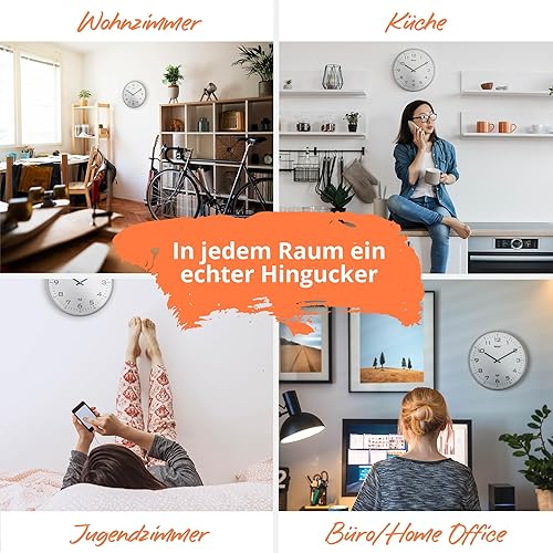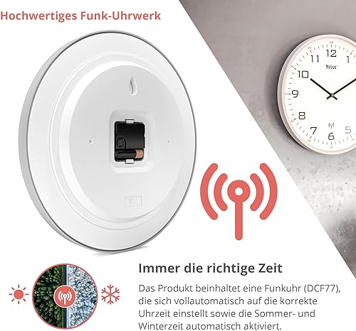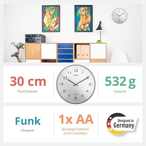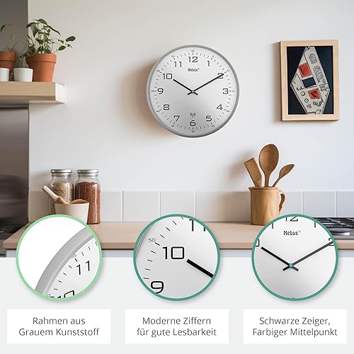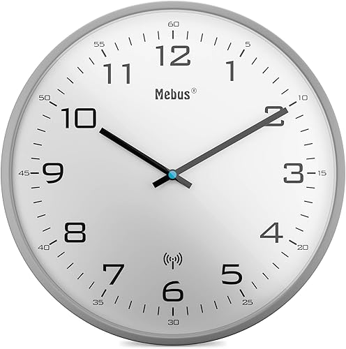 Mebus 13081 Horloge Murale Radio-pilotée silencieuse avec Cadre Gris et Cadran Blanc 30 cm