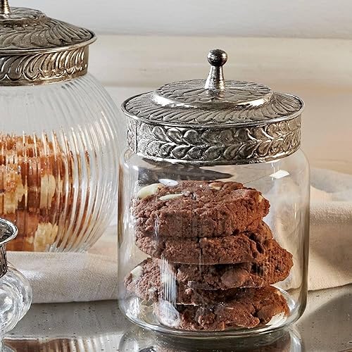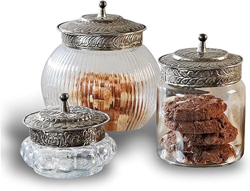 LOBERON Lot de 3 bonbonnières Plévin - verre, fer - H/D env. 13/11 cm - transparent/couleur argent, transparent/argenté
