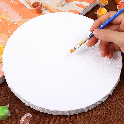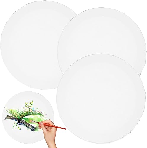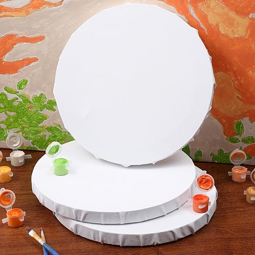 FAVOMOTO Lot de 3 toiles tendues pour artistes - 20 cm - Rondes - Blanches - Convient pour les fournitures d'artiste - Acrylique et peinture à l'huile
