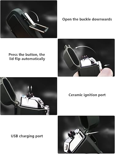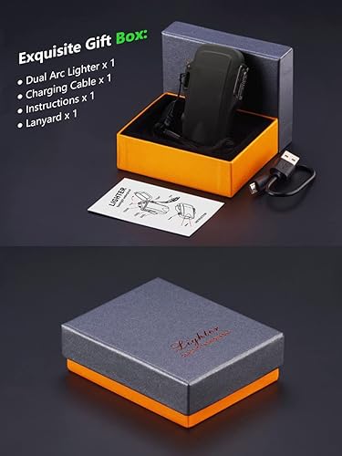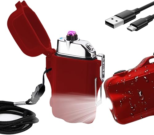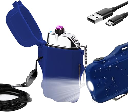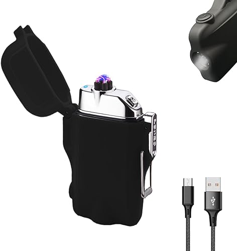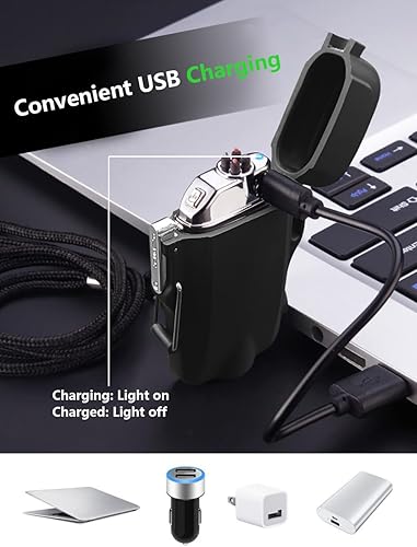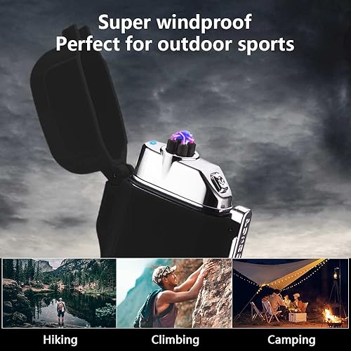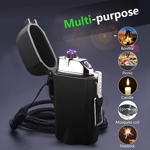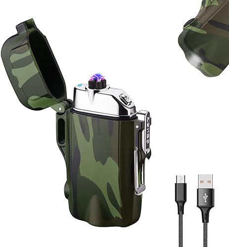 Briquet Electrique tempête étanche à Double Arc électrique, Rechargeable par USB, Briquets Plasma sans Flamme avec Cordon pour Le Camping, la randonnée (Camouflage)