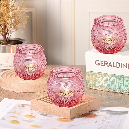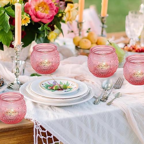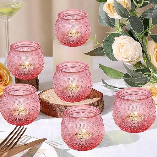 6 Pcs Bougies Votives Roses, Bougeoirs à Bougie en Verre pour Mariage, fête, décoration d'intérieur, Centre de Table (6, Rosa)