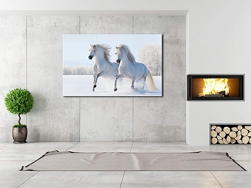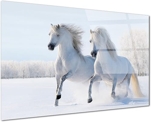 DECLINA Tableau verre acrylique Chevaux dans la neige, Tableau verre acrylique, impression sur Plexis, 80x50 cm