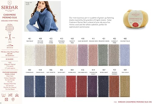Sirdar Cachemire Merino Silk DK Tricot double, rose anglaise (411), 50 g
