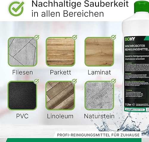 BiOHY Produit de nettoyage pour robot aspirateur (2 x 1l Bouteille) + Distributeur | Spécialement conçu pour les stations de nettoyage | Prolonge la durée de vie de la station d'aspiration