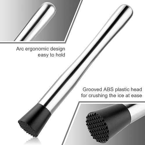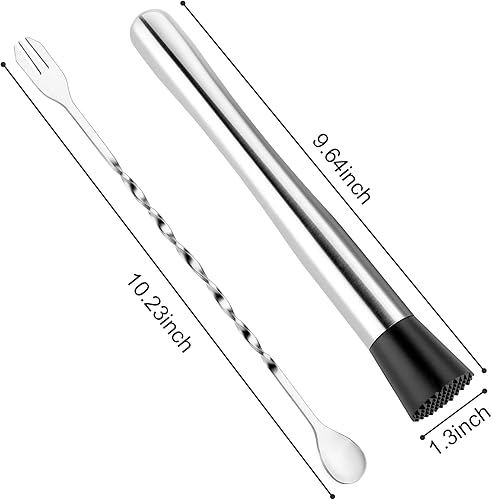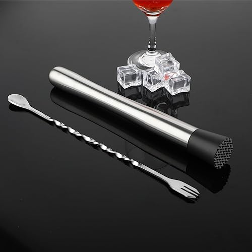 WLLHYF Lot de 2 pilons à cocktail en acier inoxydable de 25,4 cm avec cuillère à mélanger pour bar, bar, barman, agitateur à long manche pour cocktail, mojito, jus de fruits, boissons