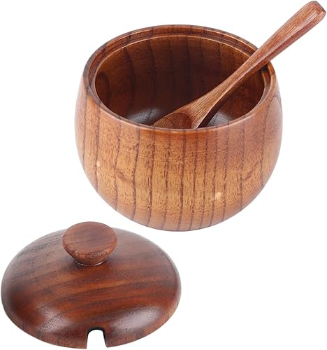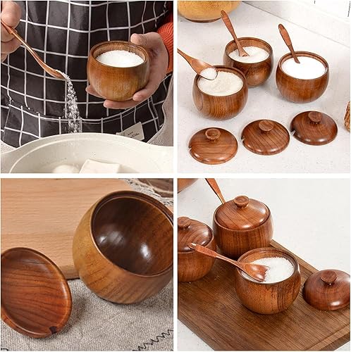 Hominas Récipient Epices, Boite Epices Cuisine Sel En Bois Pot D'assaisonnement Pot Récipient à Condiments avec Cuillère Et Couvercle pour La Maison