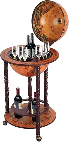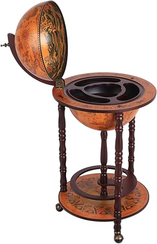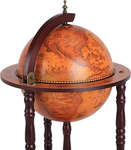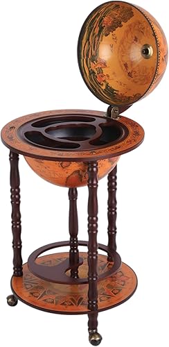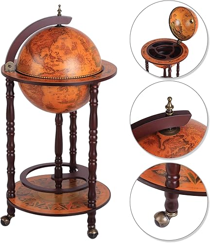 Bar Globe terrestre Vintage déco. cartographie Vieux Monde mappemonde sur roulettes Ø 45 x 87H cm Range-Bouteilles et Verres Globe ABS châssis Bois