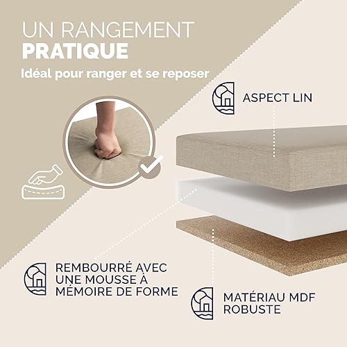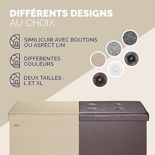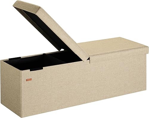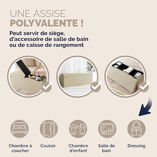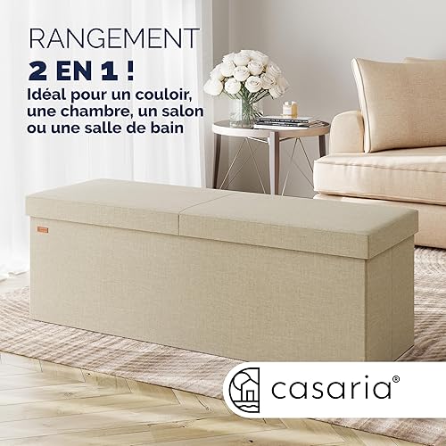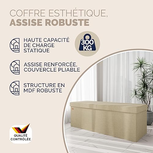 Casaria® Banc de Rangement Beige 115 x 40 x 40 cm Coffre de Rangement Pliable 130 L Couvercle Rabattable Salon Chambre