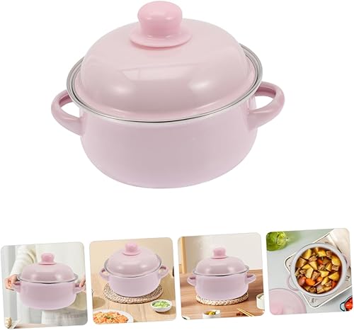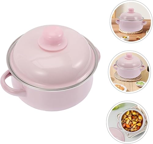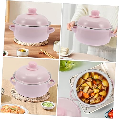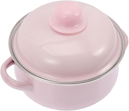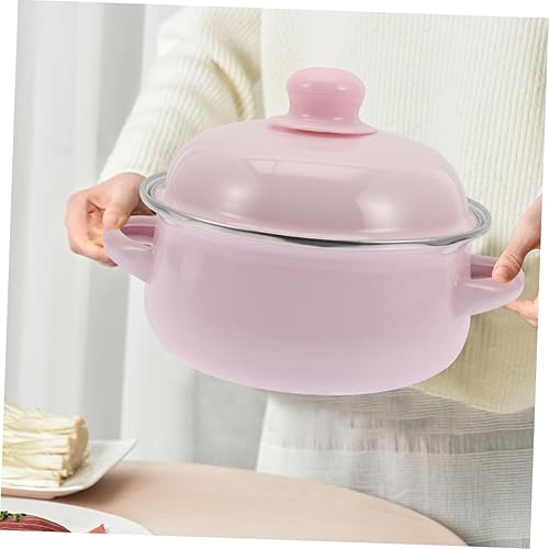 Milisten Pot à Soupe en Émail Marmite Émaillée avec Couvercle Marmite avec Couvercle Pot D'émail Faitout Traditionnel Épaissi Enamel Stockpot Émail Rose