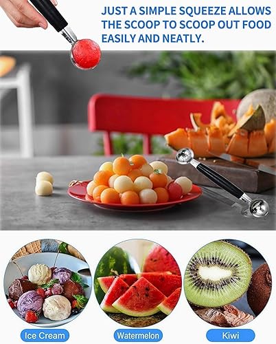 LOZTBUE Cuillère à glace en acier inoxydable avec gâchette et poignée confortable pour boule de glace, peut être utilisée pour la pâtisserie, les boules de melon, les biscuits à la crème glacée.