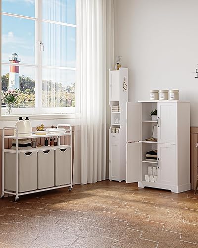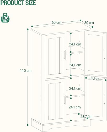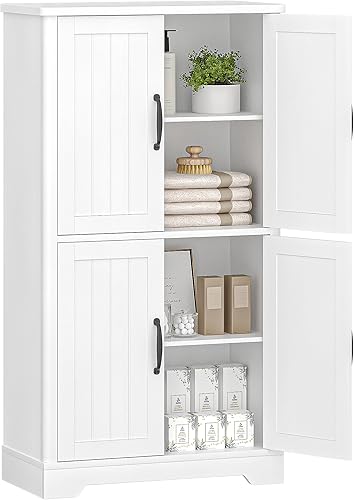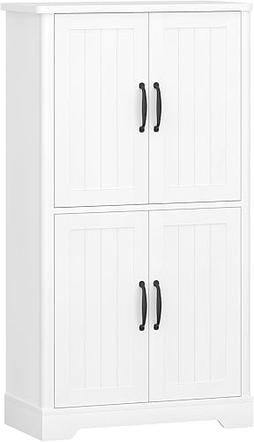 Hzuaneri Armoire de Salle de Bain, Meuble de Rangement, Double Couche avec 4 Portes, Étagères Réglables, Organisateur Multifonctionnel, pour Salon, Salle de Bains, Cuisine, Blanc SC18413X