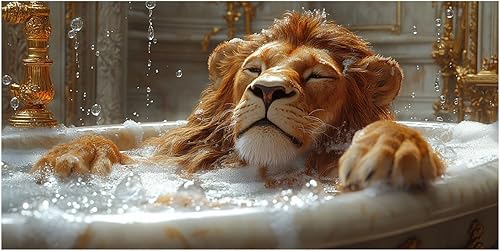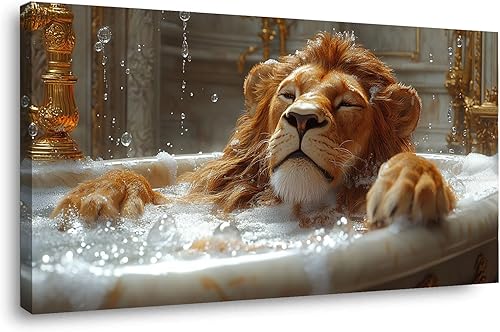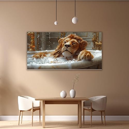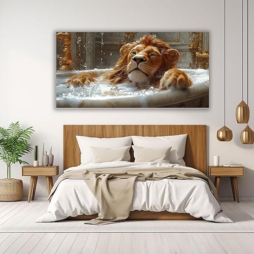 WIKEO Murale d'art l'image imprimée sur Toile Salle de bain Baignoire Lion Animal Photos d'œuvres d'art pour Le Bureau à Domicile salon Décoration Moderne(Marron)-40x80cm Encadrée