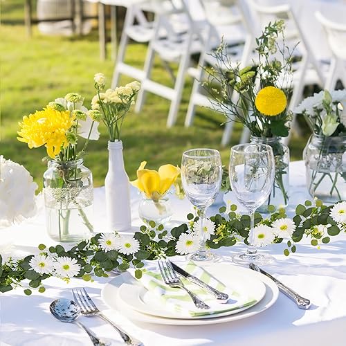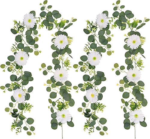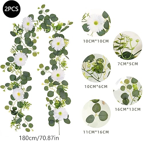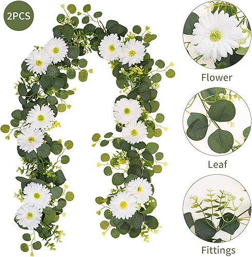 Marooma Lot de 2 Guirlandes de Marguerites Artificielles, Fleurs de Marguerites Blanches de Printemps, Guirlandes de Feuilles D'eucalyptus Artificielles de 180 Cm de Long