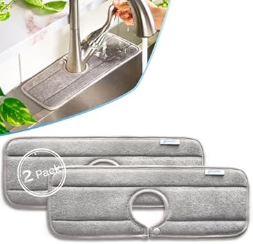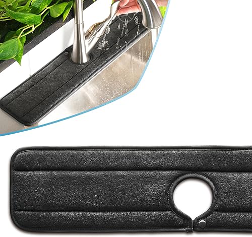 The Original Long Ternal Sinkmat XL 61 cm Absorbant Lavable Anti-éclaboussures et Poignée de robinet Attrape-goutte en microfibre Meilleur gadget de cuisine (Gris) (1133-03)