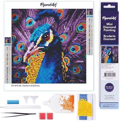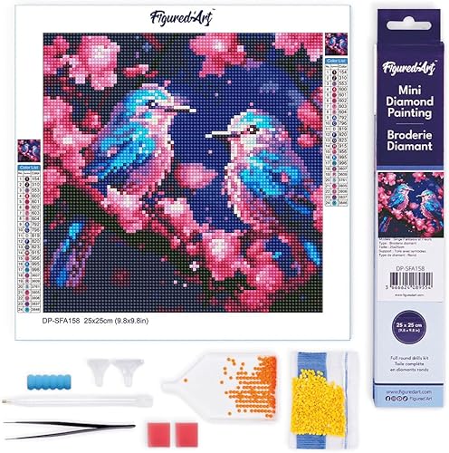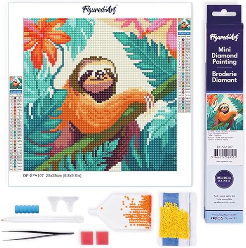 Figured’Art Mini Diamond Painting Broderie Diamant 25x25cm Toile Entière Roulée avec Perles Rondes - Toucan Tropical - Kit Complet DIY Activité Manuelle Loisirs Créatifs Adultes