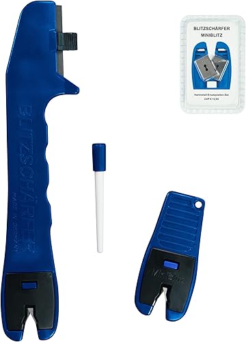 BLITZSCHÄRFER Set de 4 pièces aiguiseur de couteaux affûteur de couteau portable aiguiseur de ciseaux Blitzschärfer Mini-Blitz Aiguiseur Céramique plaquettes de rechange en carbure manuel et portable