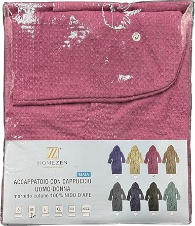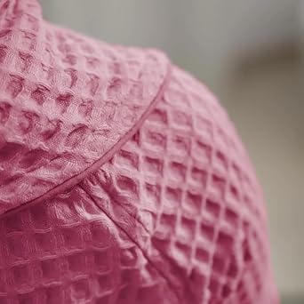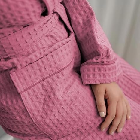 l&j Peignoir de Bain Femmes et Hommes Peignoir à capuche rose en nid d'abeille pour femme 100% coton doux et absorbant avec poches