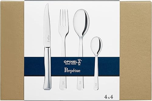 Opinel - Ménagère Perpétue - 4 Couteaux de Table, 4 Fourchettes, 4 Cuillères, 4 Petites Cuillères - Acier Inox - Apte au Lave-Vaisselle - Design Moderne