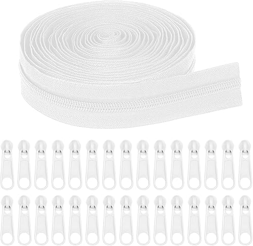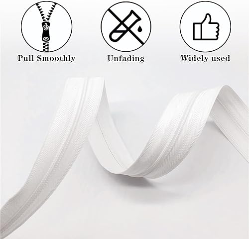 RobLuX Fermetures Eclair Blanc Fermeture Eclair au Metre 20m Fermetures Eclair en Nylon Sans Fin avec Curseur avec 40 Curseur Fermeture Eclairs pour Vêtements sacs Bagages Linge de lit