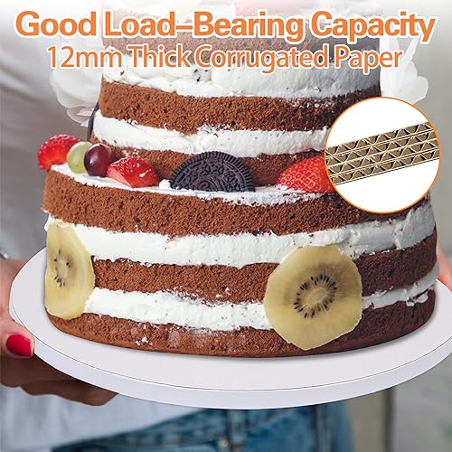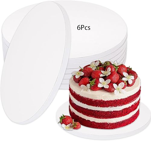 KOMABLEN 6 Pièces Plateau Gateau, 12mm Support Gateau Rond, Non Collant Cake Board 30 cm, Réutilisables Disque Gateau pour Mariage, Anniversaire, Fête