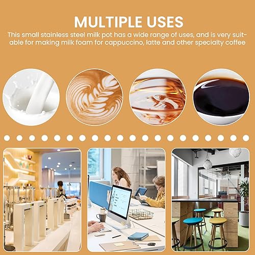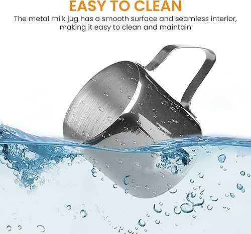 Lot de 6 pots à lait en acier inoxydable : 30 ml Petit pot à lait en acier inoxydable avec poignée, verseur à expresso portable de 1 oz, pot à lait pour mousser le lait, cappuccino, latte, expresso
