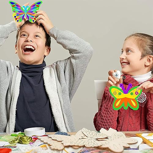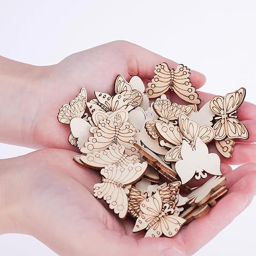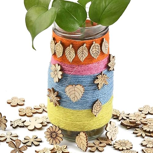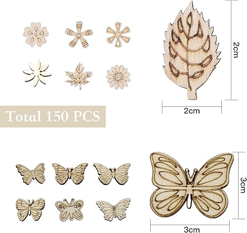 Plstod Décoration Bois Naturel 150 Pièces Embellissements Fleurs Papillons Feuilles pour Décorations de Mariage Décorations pour Arbres de Noël Scrapbooking Artisanat de Bricolage Décorer