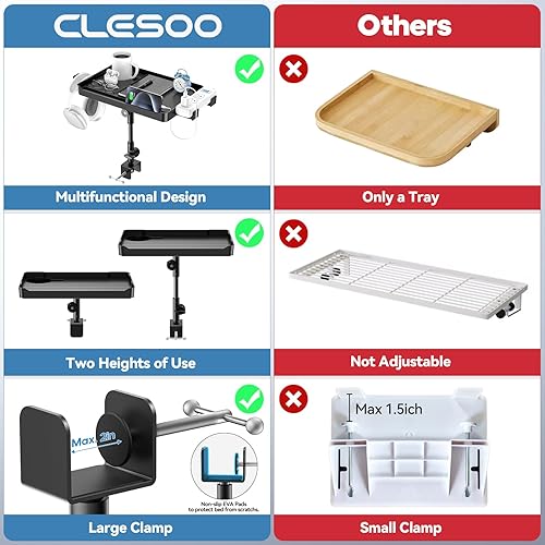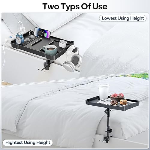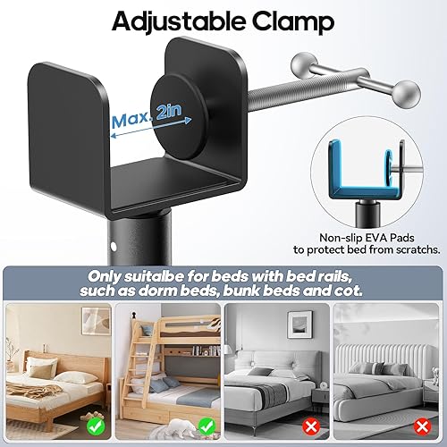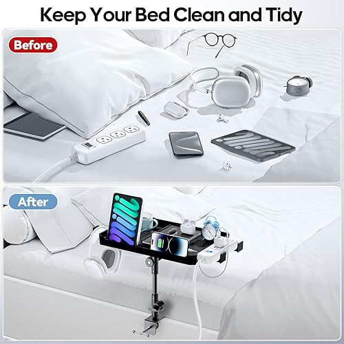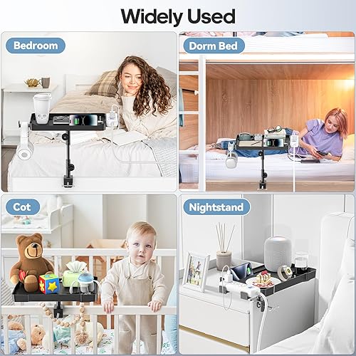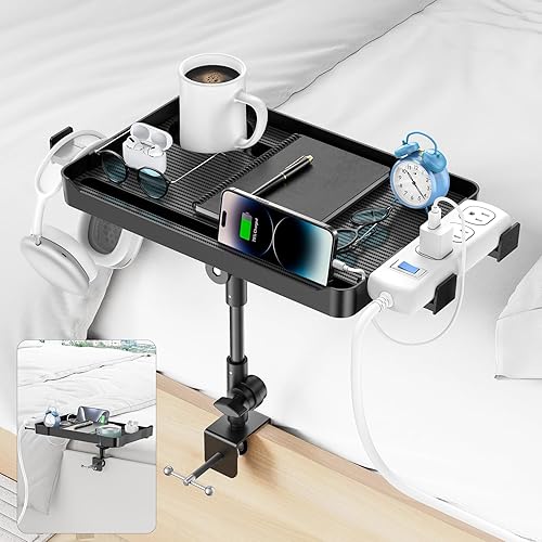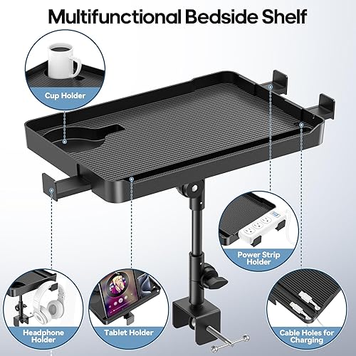CLESOO Table de Chevet, Étagère de Chevet de Lit à Hauteur Réglable, Étagère pour Lit Superposé avec Porte-gobelet, Fente pour Tablette, Trous pour Cordon, Support de Multiprise d'extension pour Lit