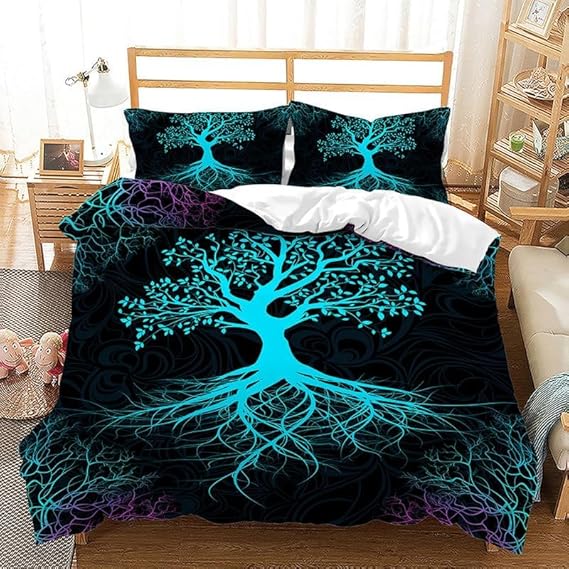 ZHAYUCHU Housse de Couette 160x200 cm Arbre De Vie Coloré Motif Parure de Lit Enfant Fille Garçon 1 Personne en 100% Microfibre avec 2 Taie d'oreiller 65x65 cm, Ensemble De Literie avec Fermeture