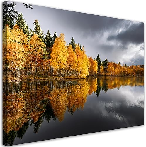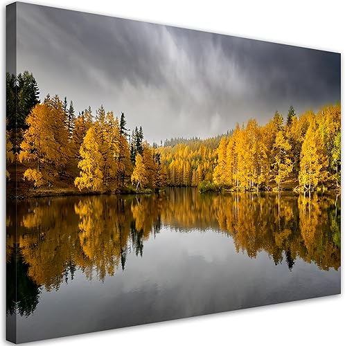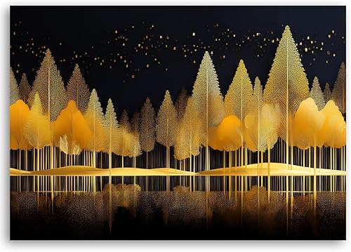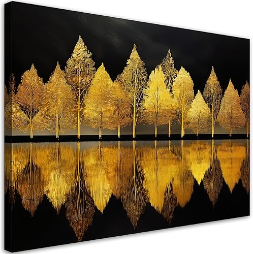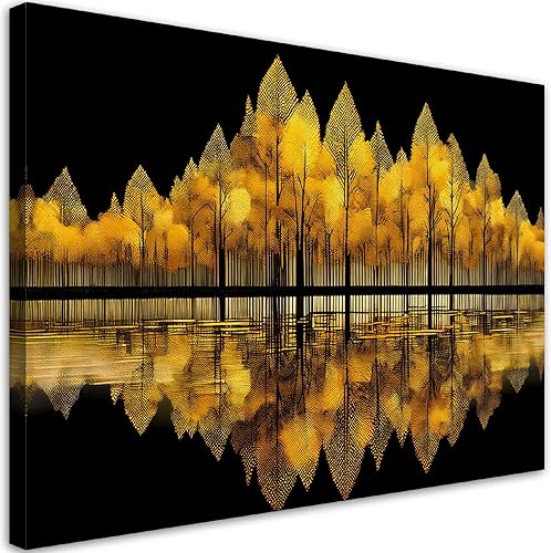 Feeby - Tableau sur Toile - Decoration Murale Peinture - Arbres dorés Forêt - 90x60 1partie - Chambre Toiles Intissé - Tableaux chambre à coucher - Decoration Chambre