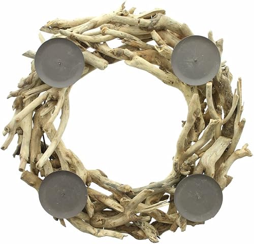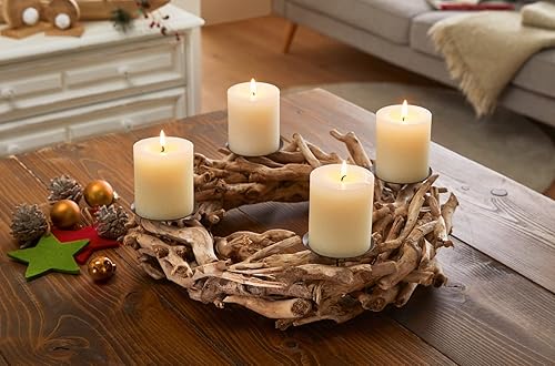 Couronne de l'Avent en bois flotté Ø 40 cm, couronne de table, bougeoir pour 4 bougies piliers, couronne de Noël, décoration de Noël