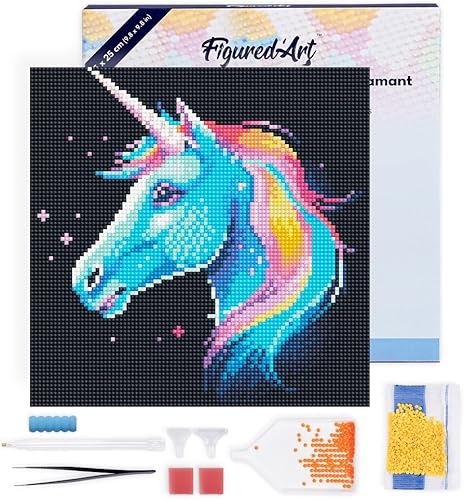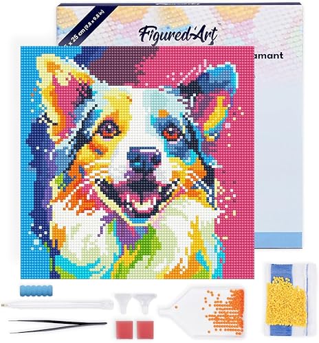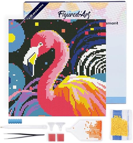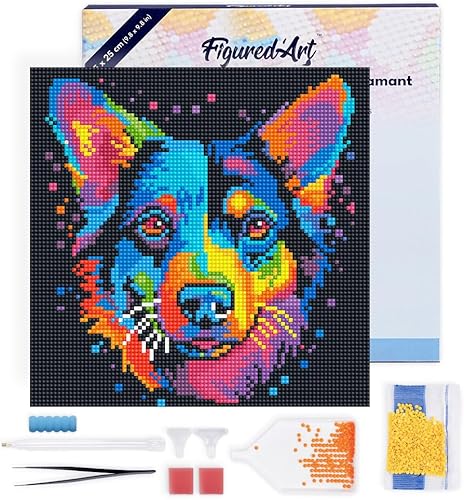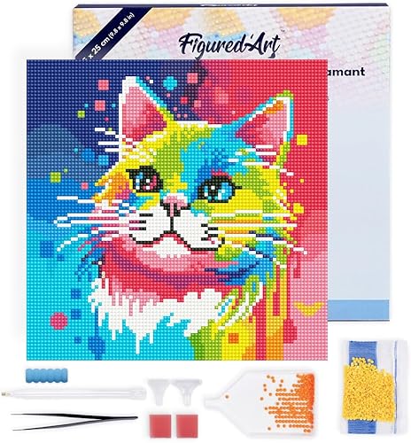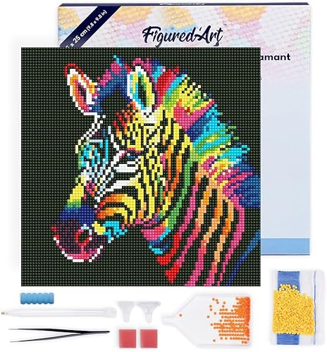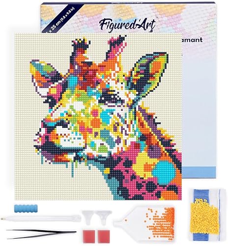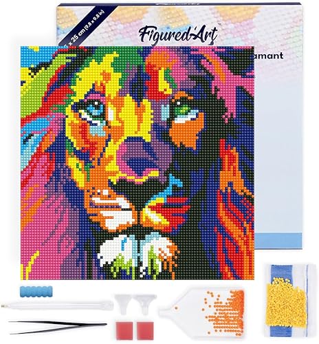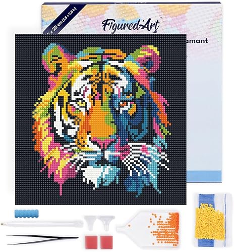 Figured’Art Mini Diamond Painting Broderie Diamant 25x25cm avec Cadre Toile Tendue et Perles Rondes - Tigre Abstrait Pop Art - Kit Complet DIY Activité Manuelle Loisirs Créatifs Adultes