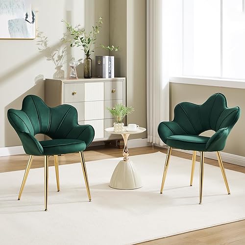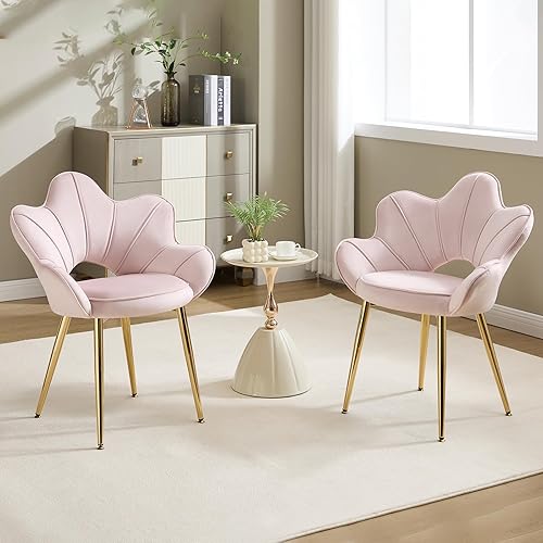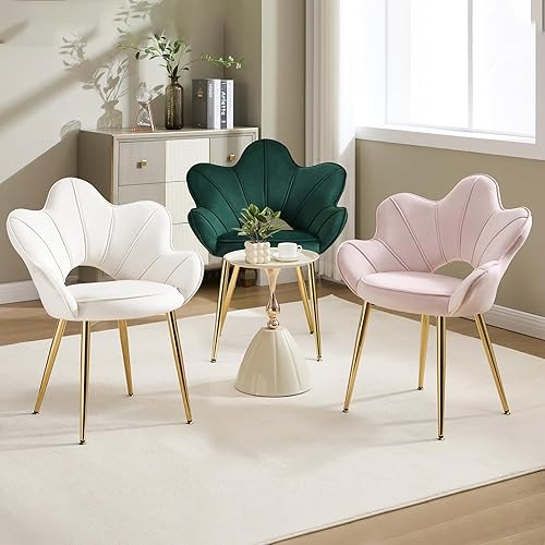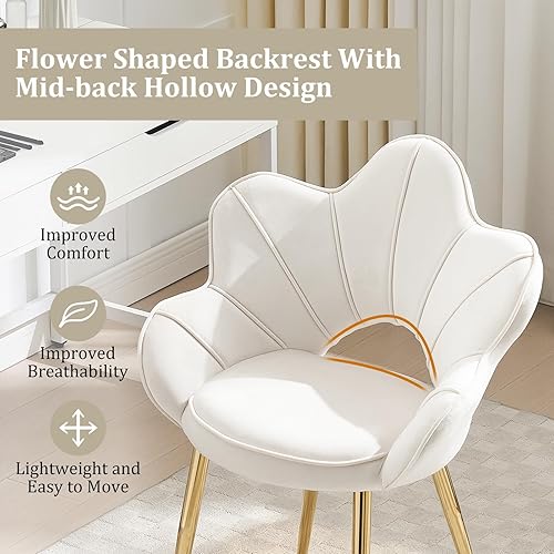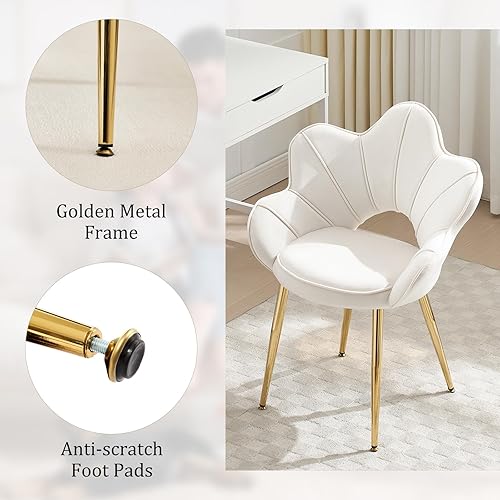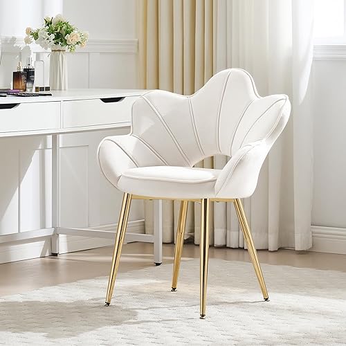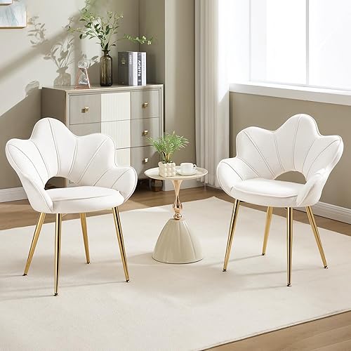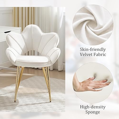 KHISCHMO Lot de 2 Fauteuils en Velours, Fauteuil Moderne avec Pieds en Métal Chambre à Coucher Chaise Longue en Forme de Pétale Convient pour Chambre à Coucher,Coiffeuse,Salon,Blanc