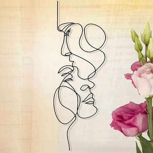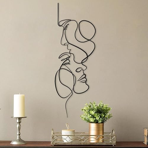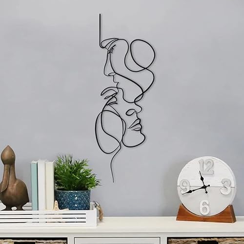 Art mural en métal, 40 x 14 cm, minimaliste avec ligne faciale, décoration murale abstraite en fer, sculpture murale moderne à suspendre pour salon, chambre à coucher, salle de bain, bureau