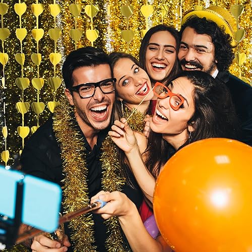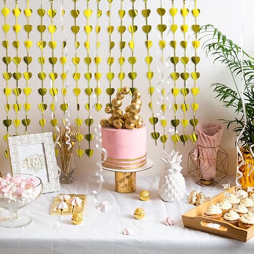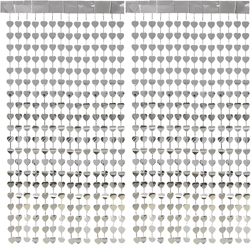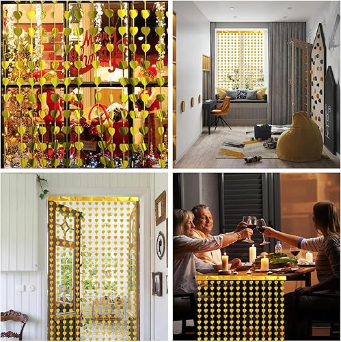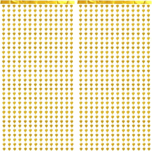 Prmape 2 Pièces Rideau Frange Doré, 1×2m Rideaux a Frange Coeur, Rideau Paillette Anniversaire, Rideaux Coeur Saint Valentin pour Décorer Toile de Fond Anniversaire Party, Porte, Fenêtre, Fête