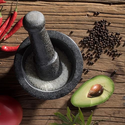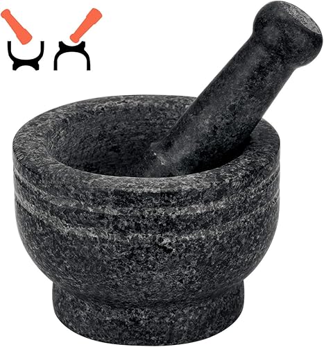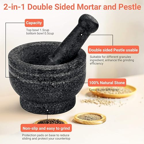 Tera Mortier et Pilon 2 en 1 Usage à Deux Faces Mortier avec Pilon en Granit Poli Sécurité Alimentaire pour Les Herbes Épices Grains de Café Feuilles de Thé Masalas et Le Guacamole