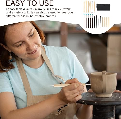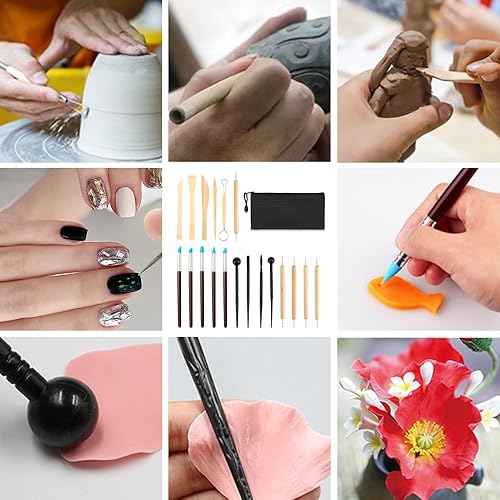 YZROHYI 20Pcs Outils Sculpture Argile,Outils Poterie,Kit Outils Argile Autodurcissante,Clay Sculpting Tools,Outils de Modelage,Kit de Poterie Adulte,Outil Céramique L'artisanat avec Sac de Rangement