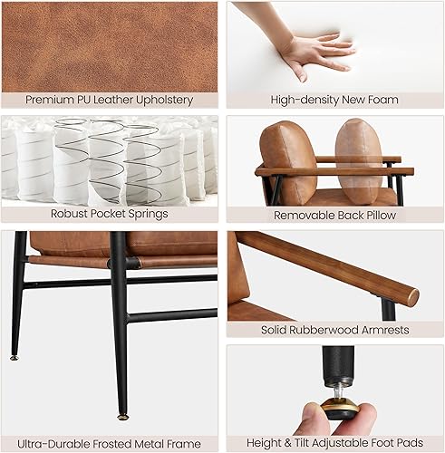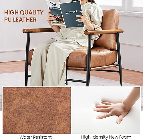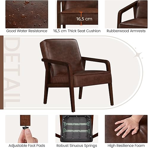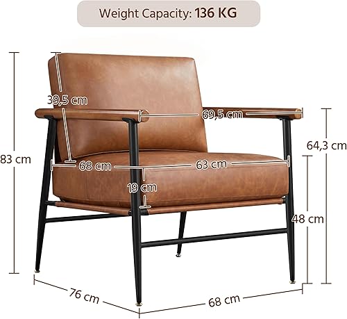Yaheetech Fauteuil Salon Confortable Cadre Métal Fauteuils et Chaises pour Salon Siège Bien Rembouré 1/Marron