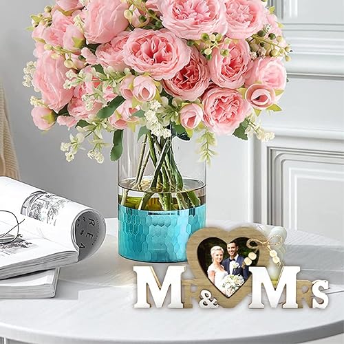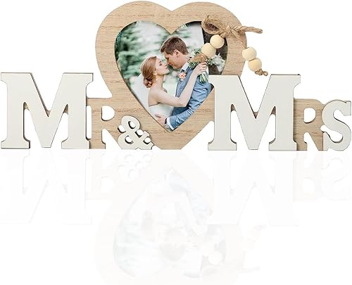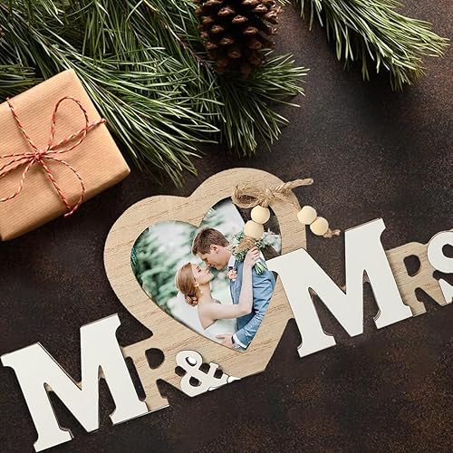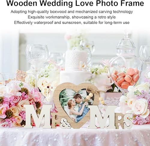 DULSPUE Mr & Mrs Décorations de Mariage avec Cœur Cadre Photo, Décorations de Table Mariage Vintage, Cadeaux de Jeunes Mariés, décoration de Table créative décoration de la Maison
